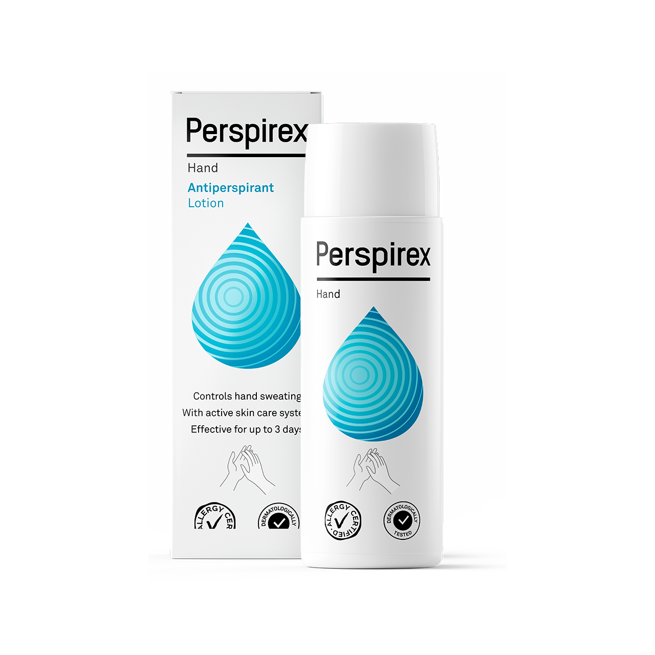 Perspirex Hand is an expert antiperspirant non-stick lotion with an active skin care system to minimise the risk of skin irritation. It has a clinically proven protection effect against sweat for up to 3 days.